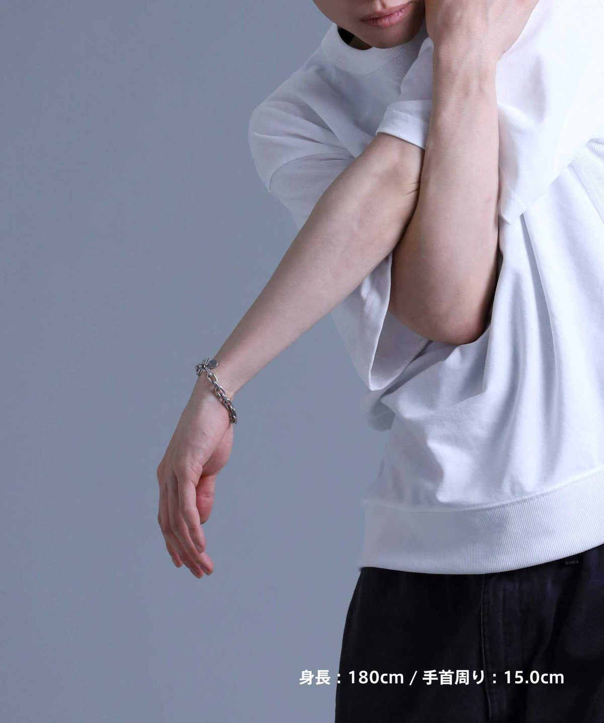 ●シンプルかつ洗練されたチェーンを使用した、存在感あるシルバーブレスレット。