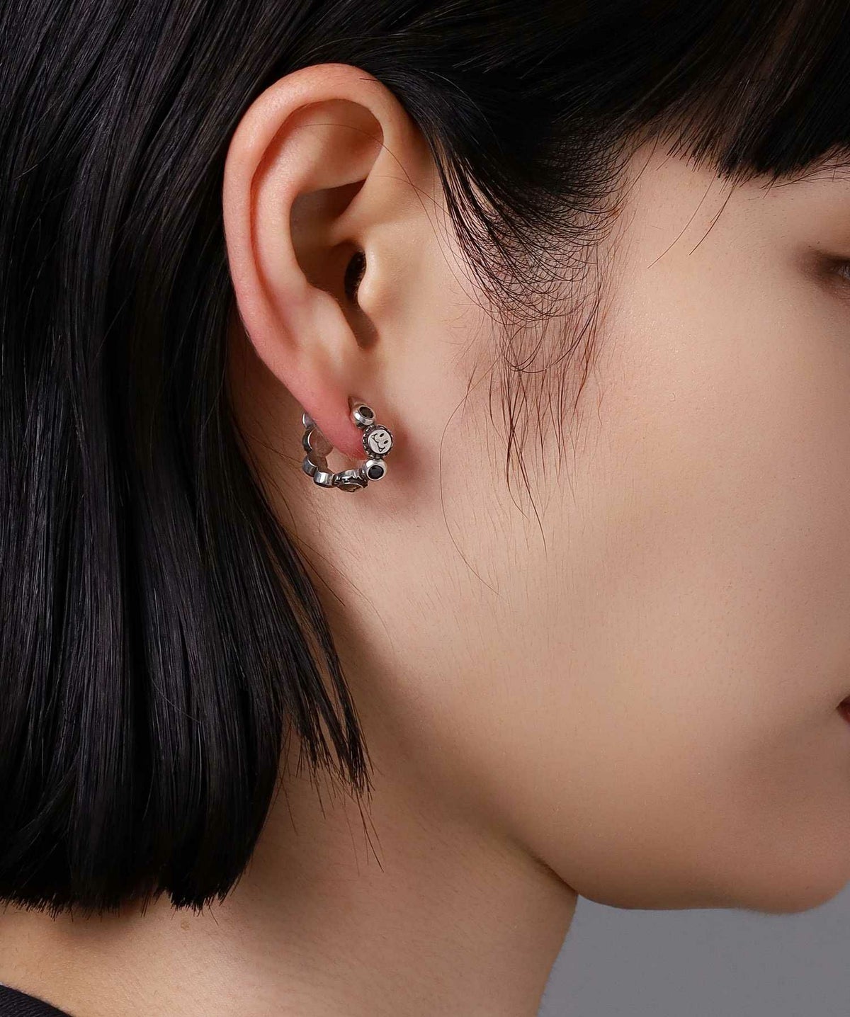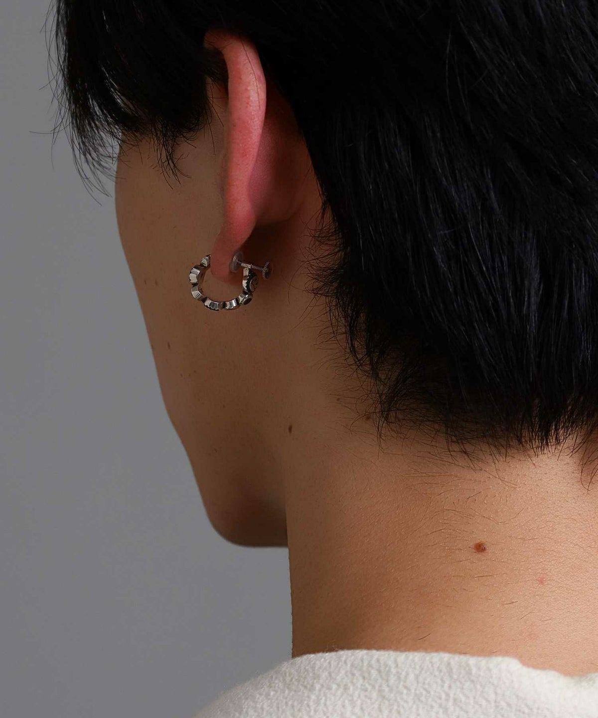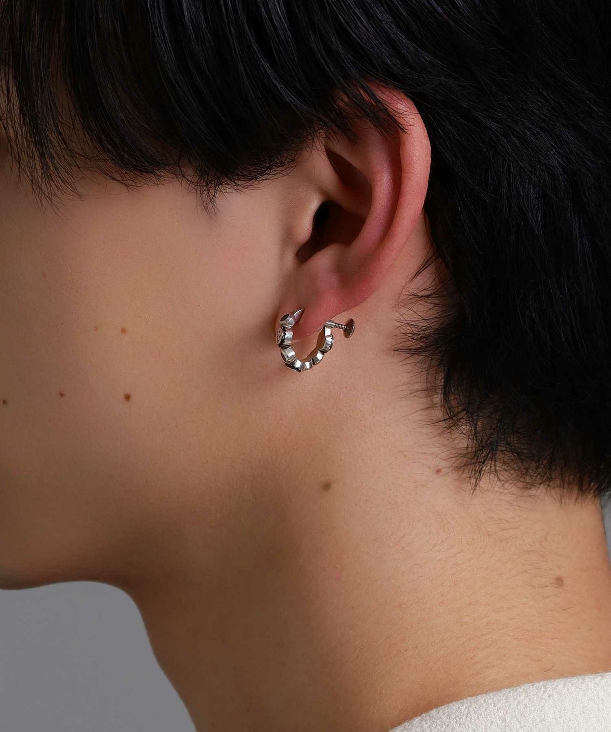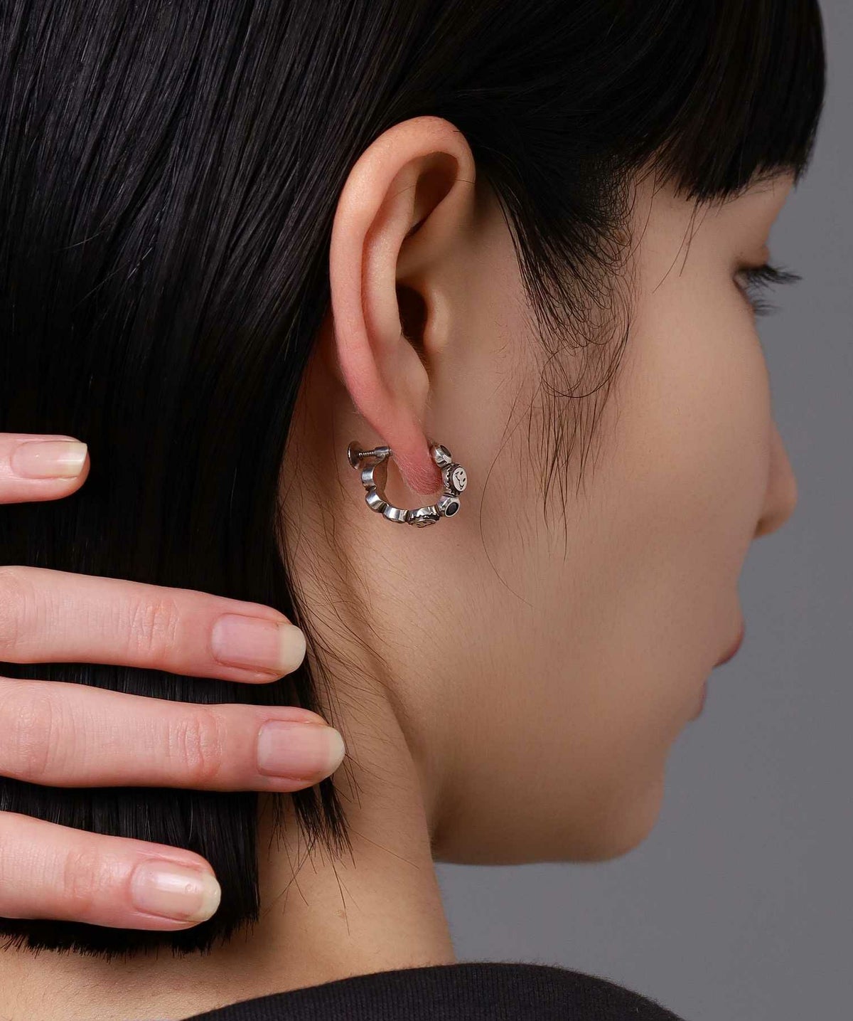 ピアスホールがある方はイヤーカフのように耳上部に着けてもオシャレ度がアップ。