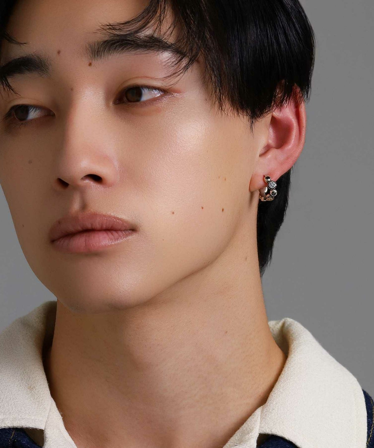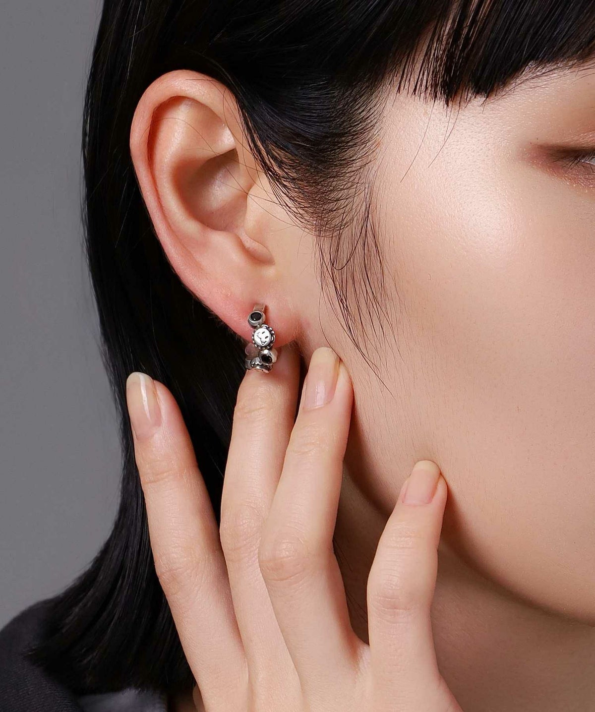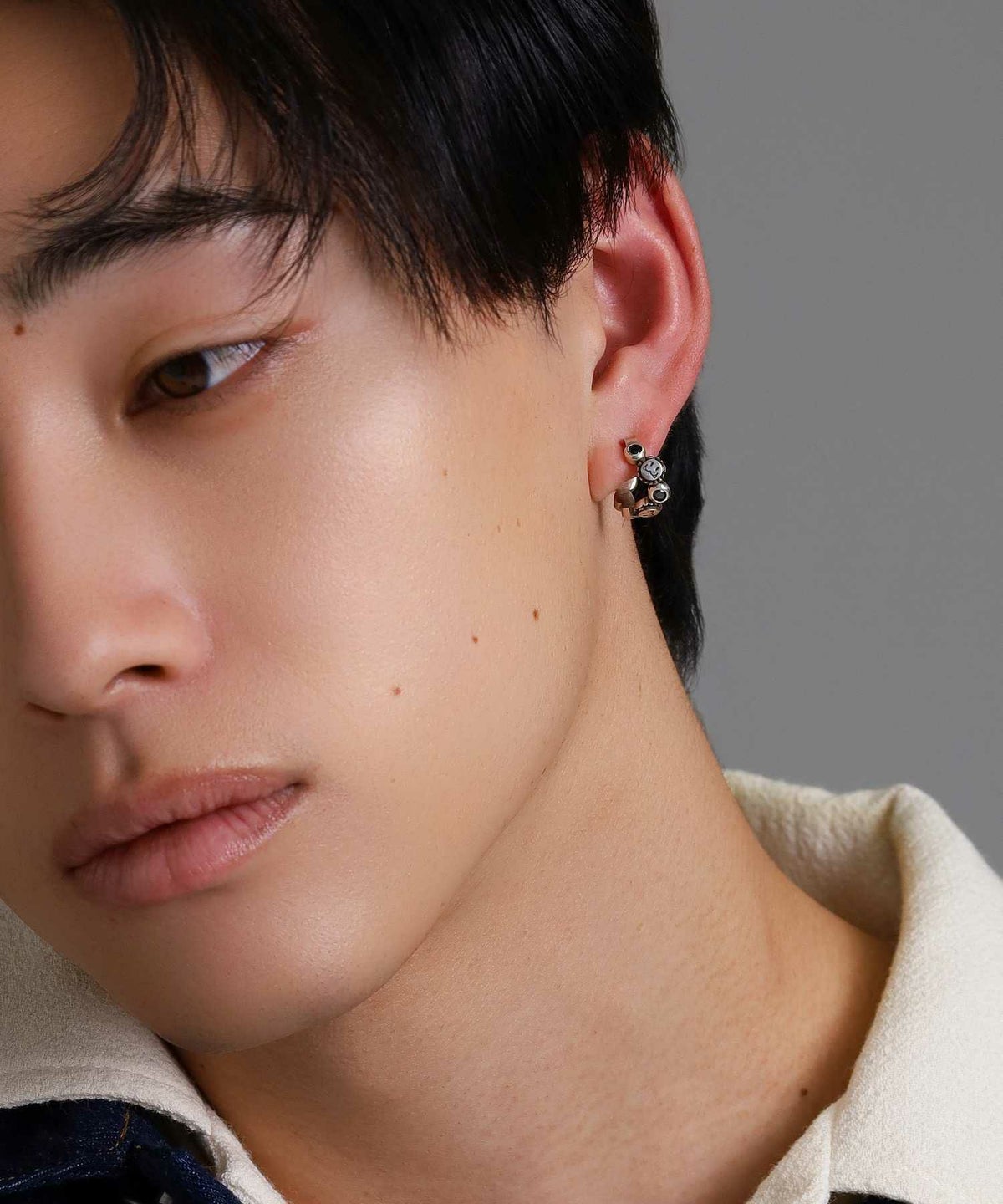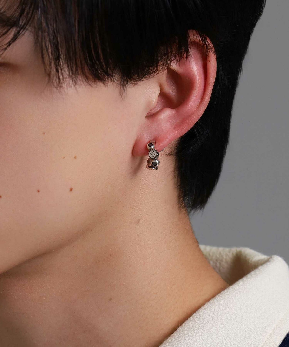 ピアスホールがある方はイヤーカフのように耳上部に着けてもオシャレ度がアップ。