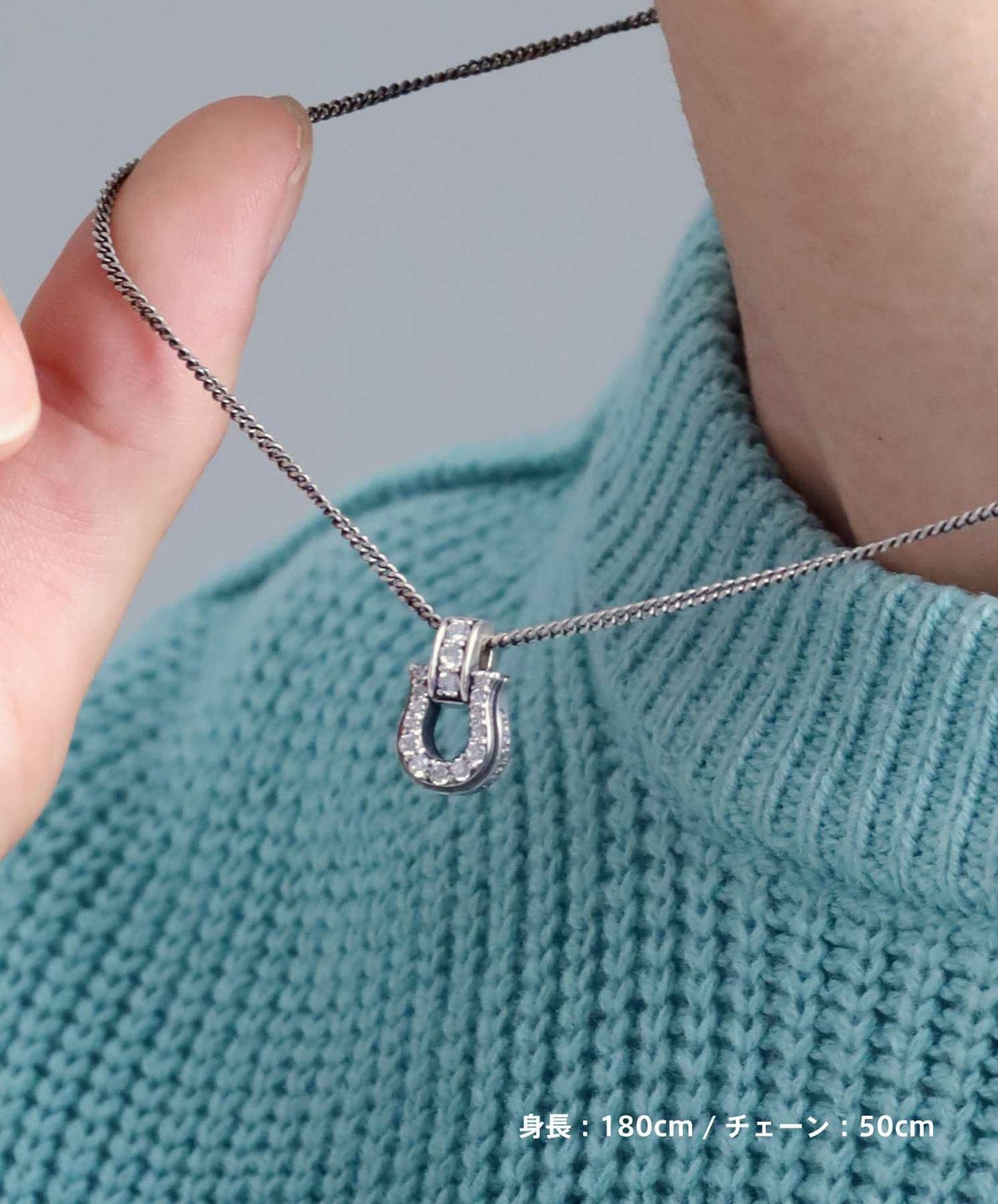 ●前面にキュービックを敷き詰めたホースシューモチーフのネックレス。