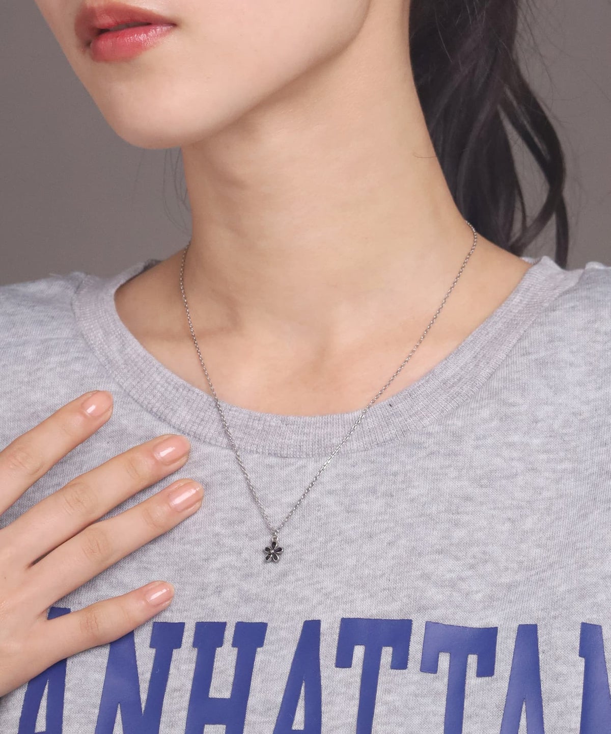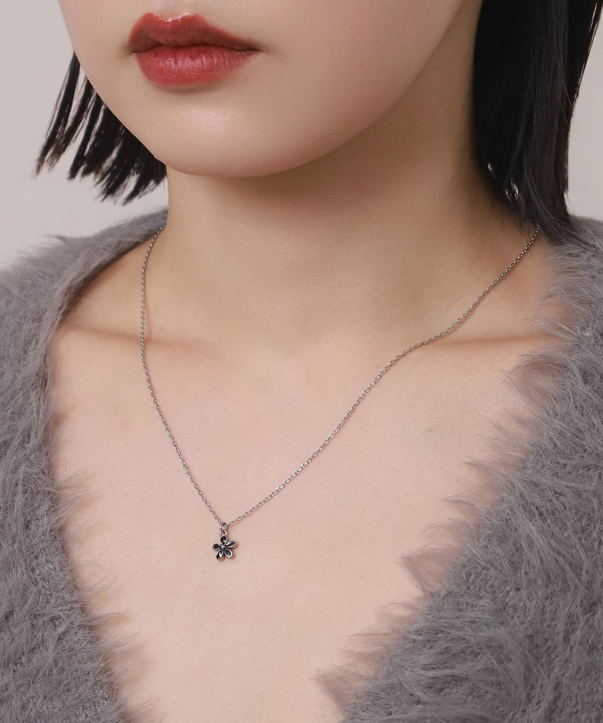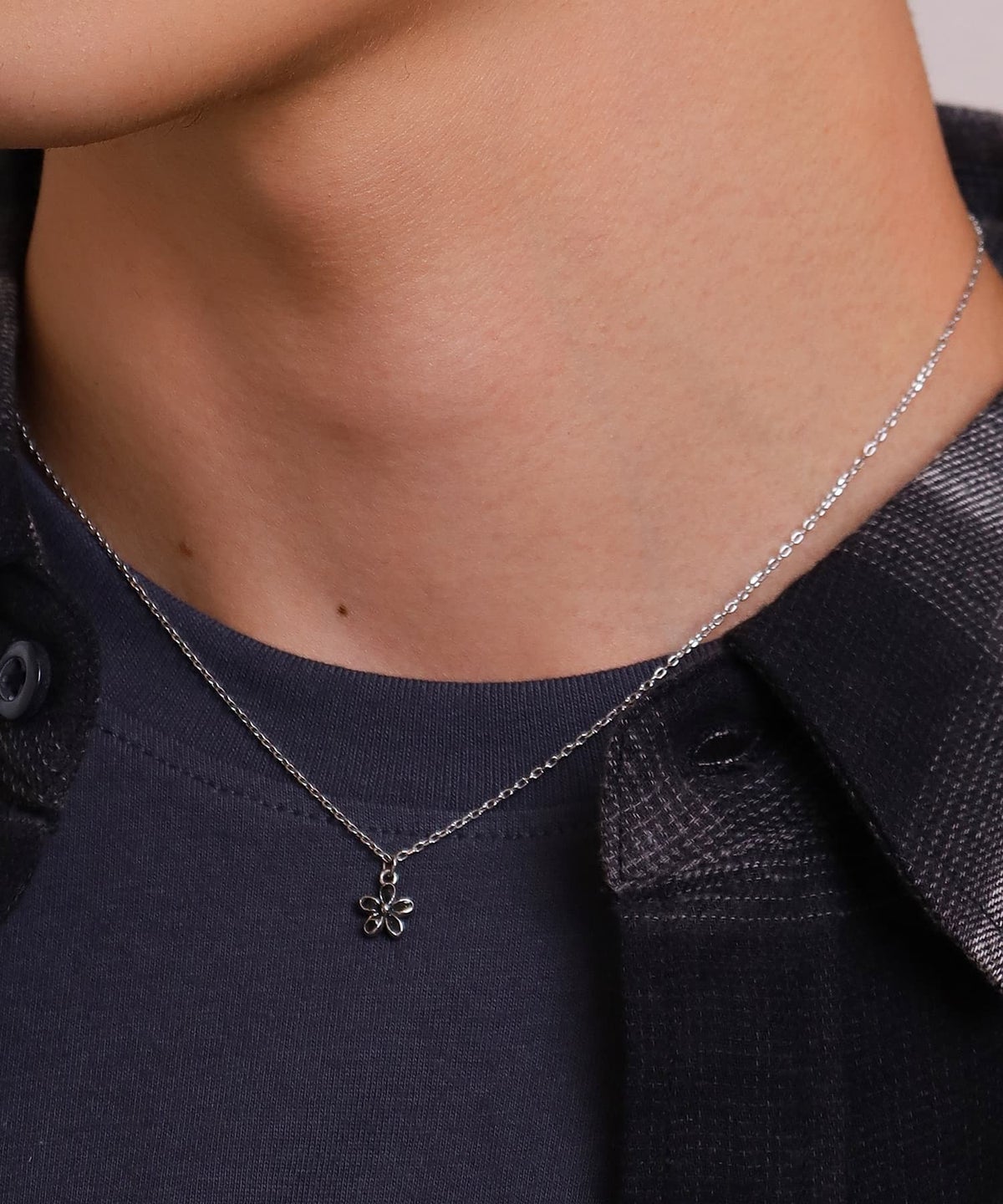 LHME-エルエイチエムイー- “Moment”フラワーネックレス/ブラック/シルバー/サージカルステンレス316L(金属アレルギー対応)