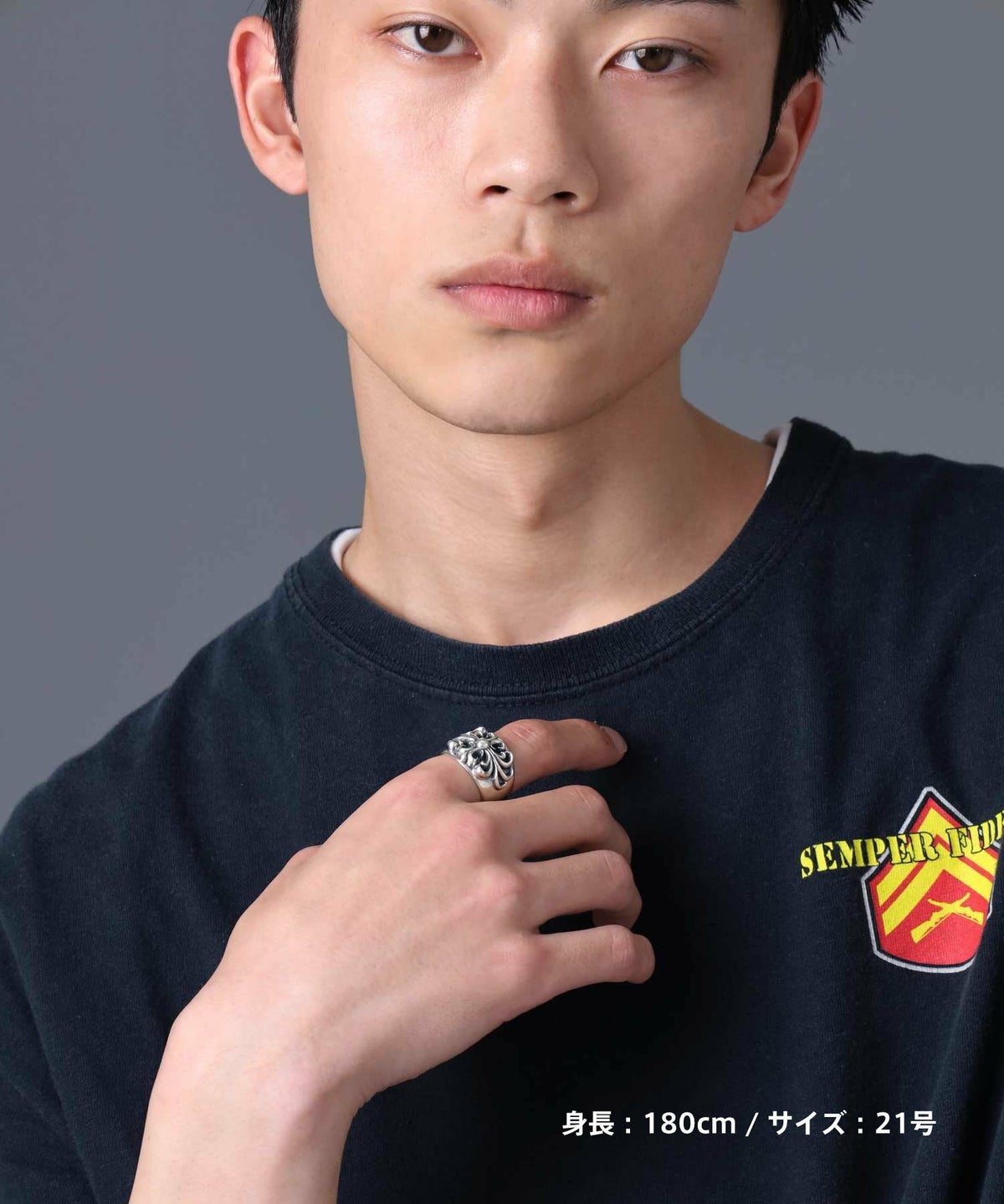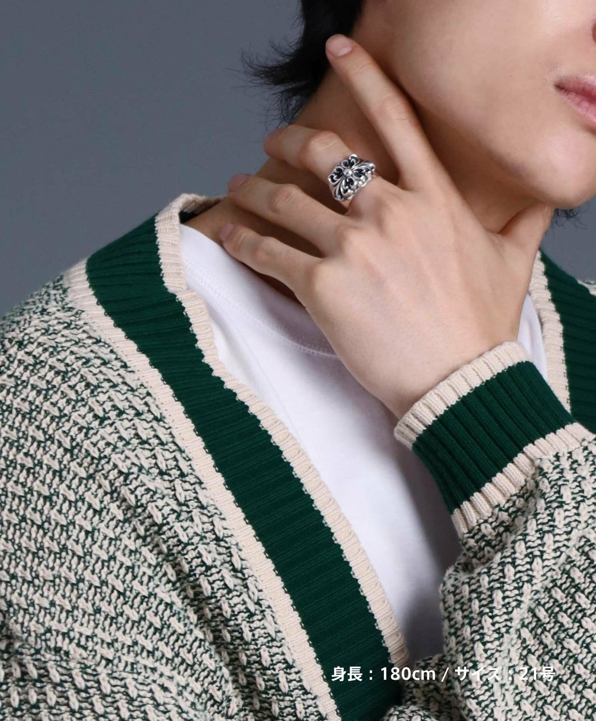 ・シルバーアクセサリーは無骨さとクラシカルさを両立させる重要な仕上げ。