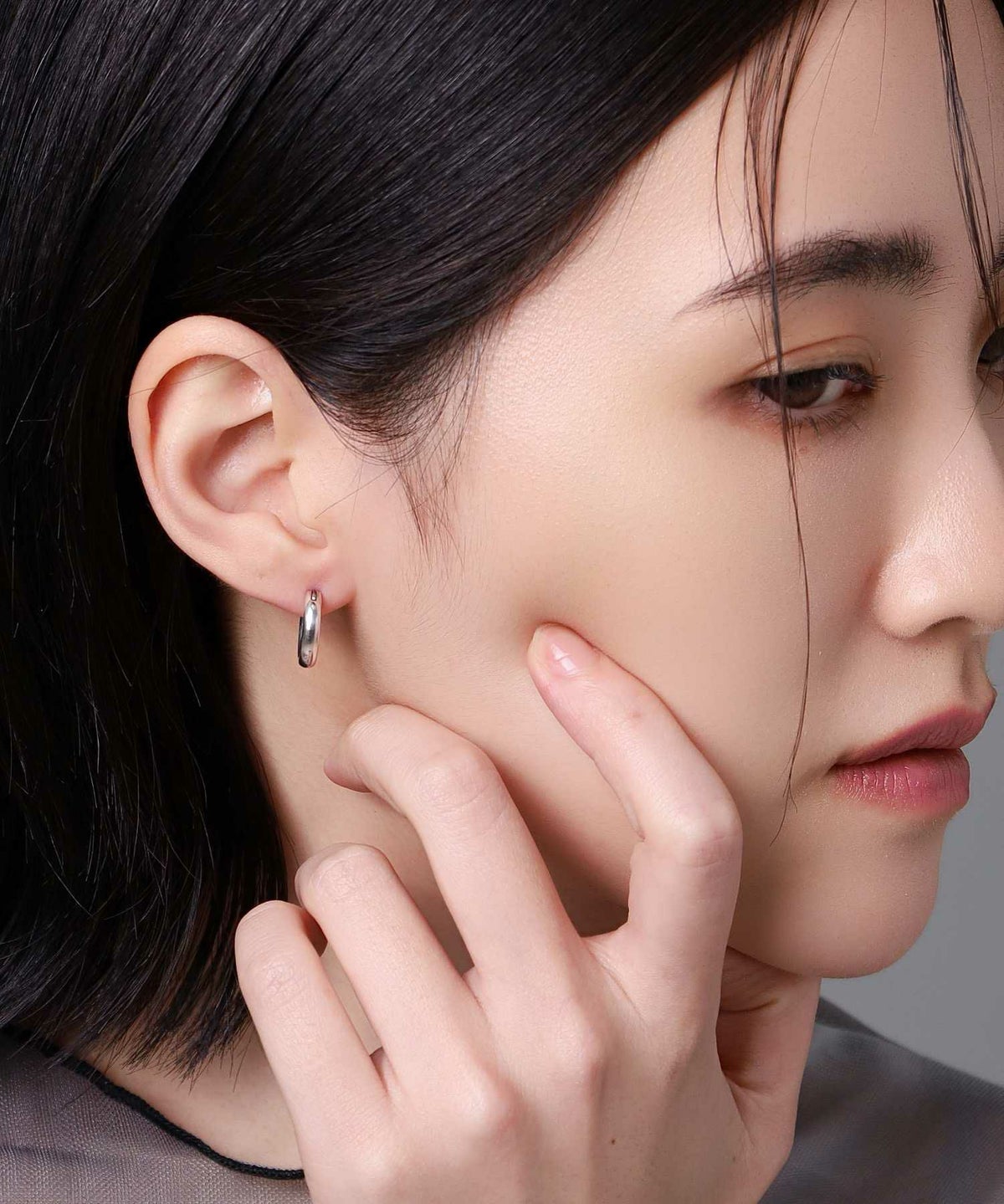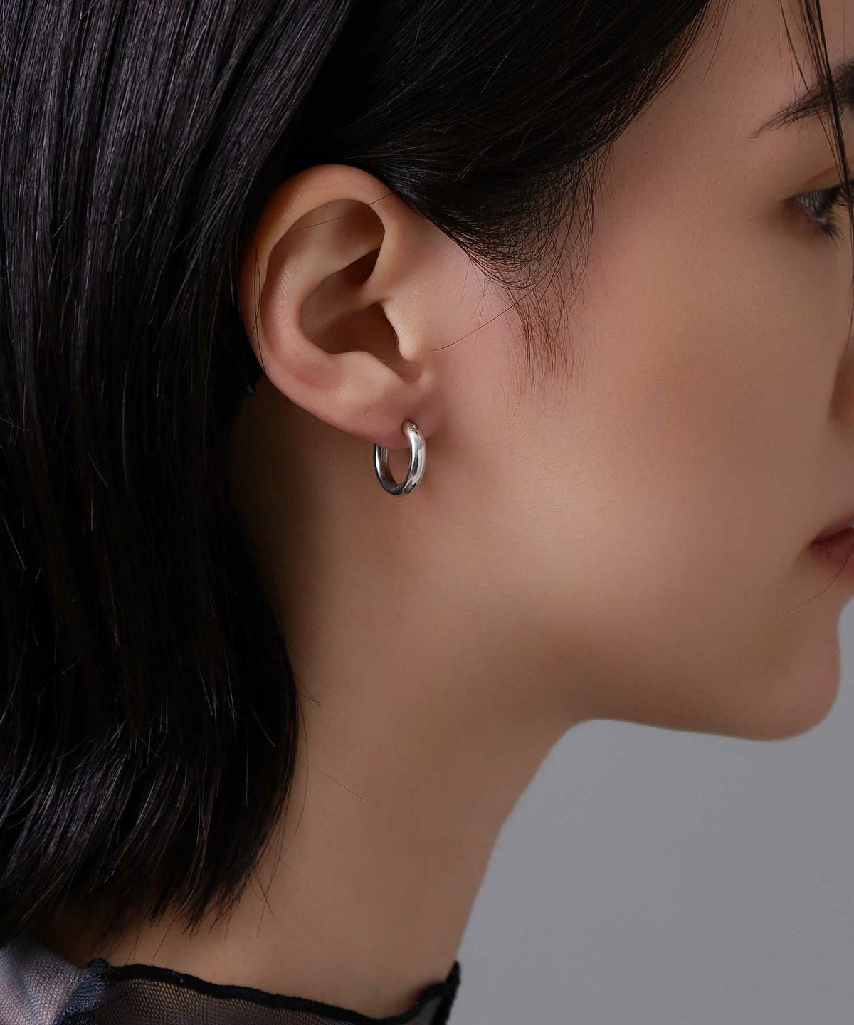 オーバーサイズのTシャツにも負けず、リラックスした夏の休日にもサラっと着けれる絶妙なサイズ感の太い(Thick)ピアス。