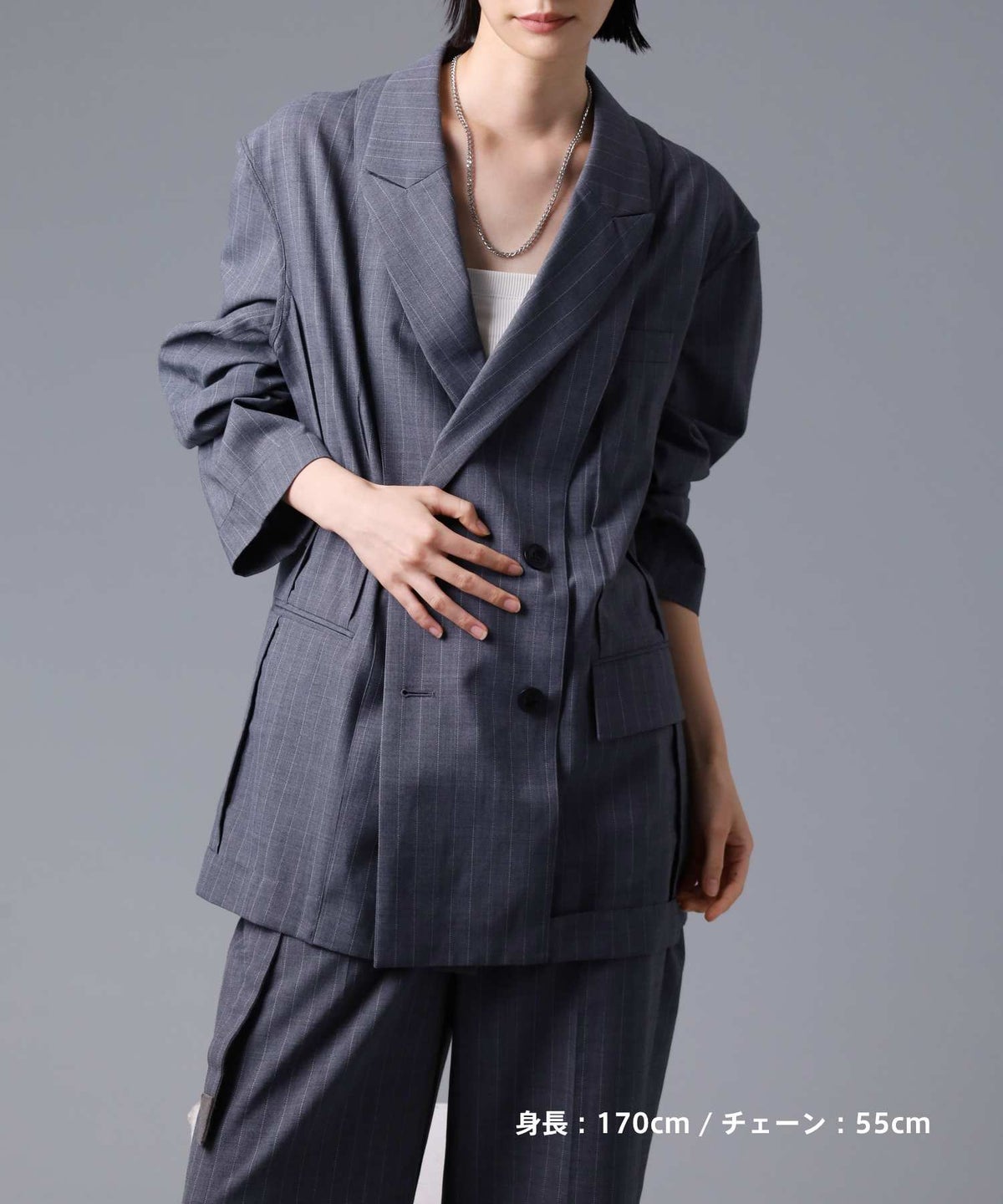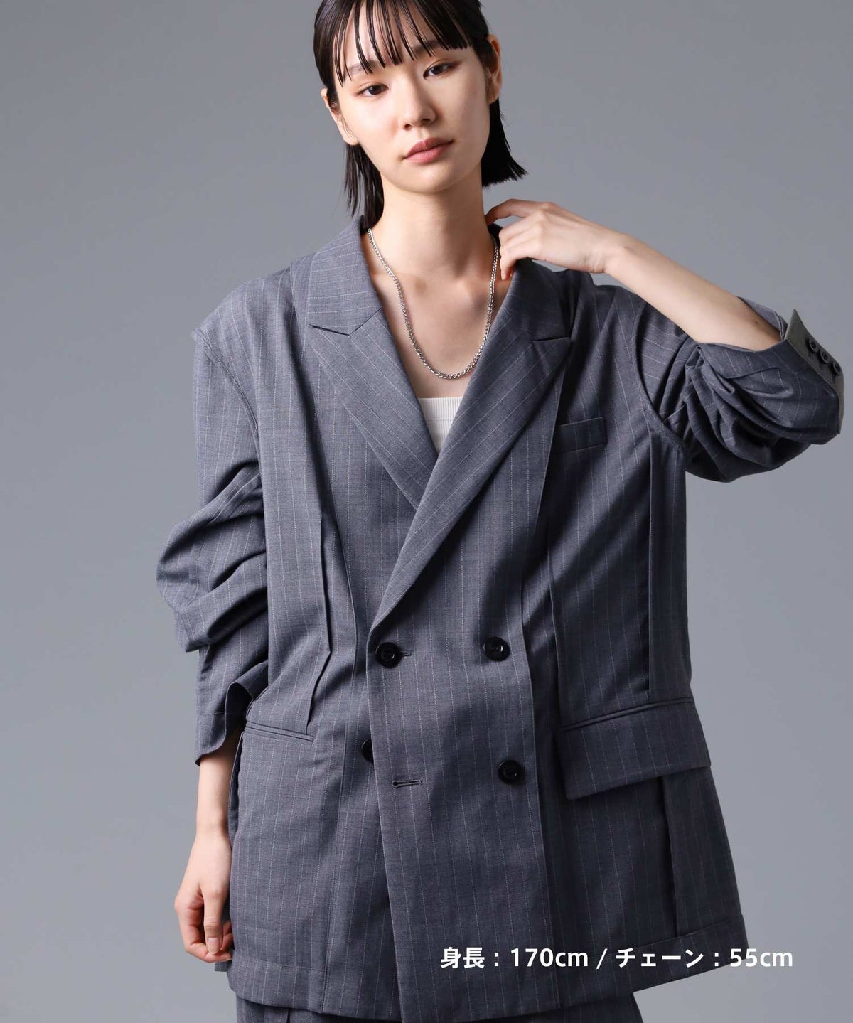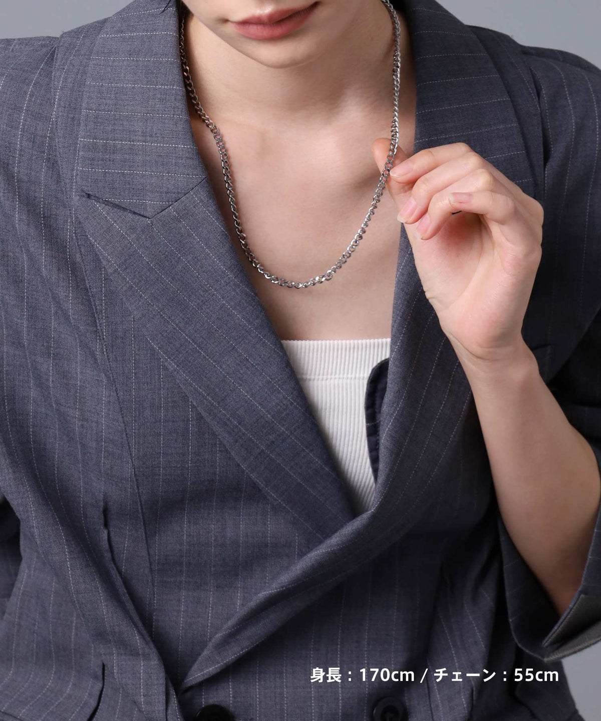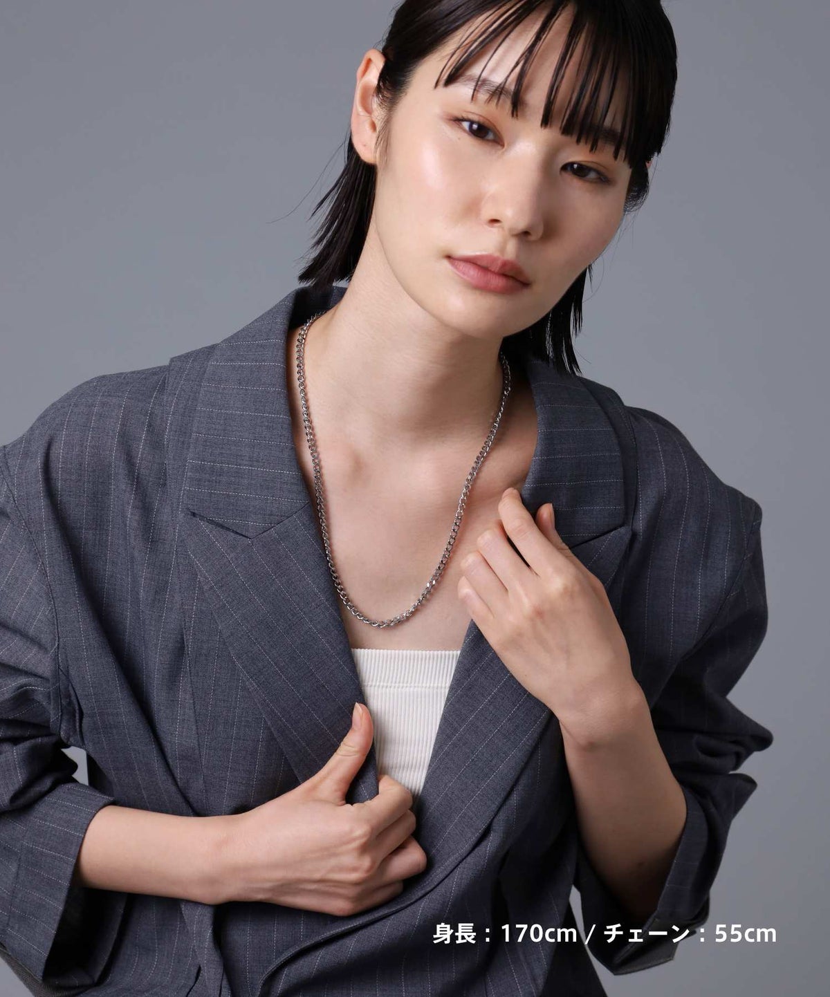 ・セットアップやジャケットの首元にさらりと添えれば、一気にモードな大人のムードへ。