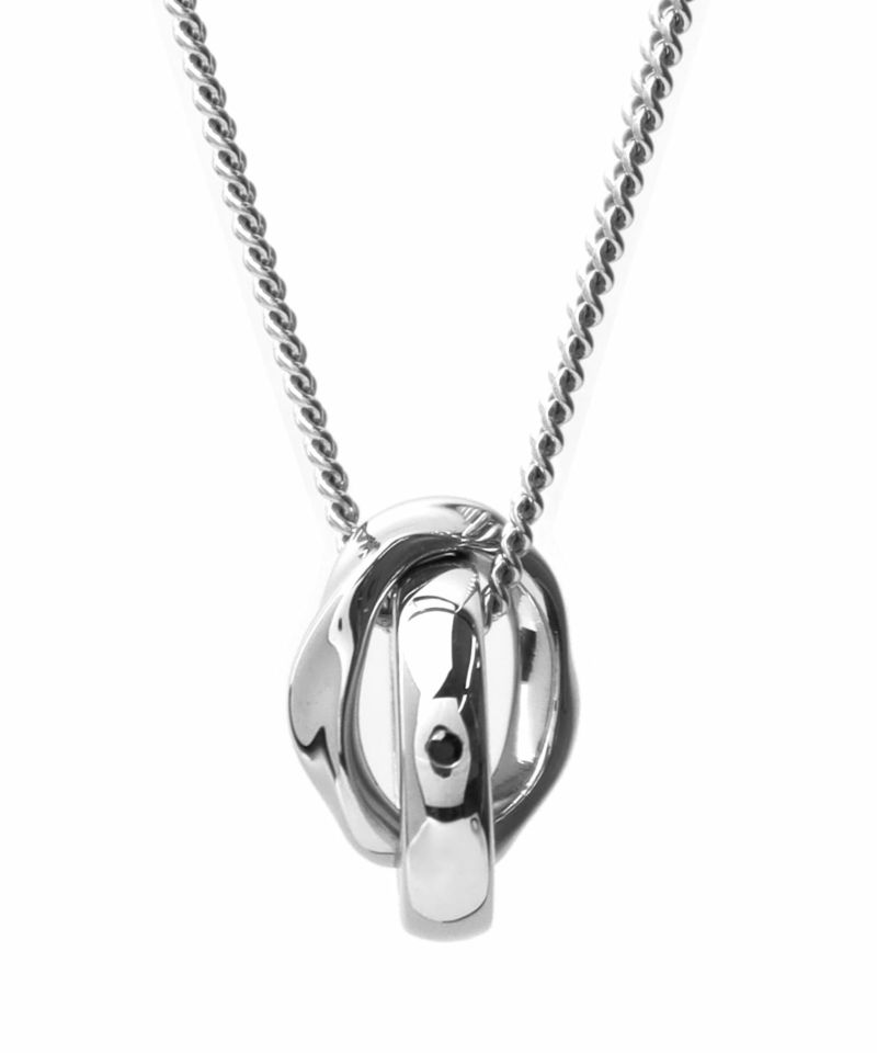 ウェーブされたリングとプレーンなリングが組み合わされているダブルリングネックレスです。さりげなくキュービックジルコニアがセットされています!