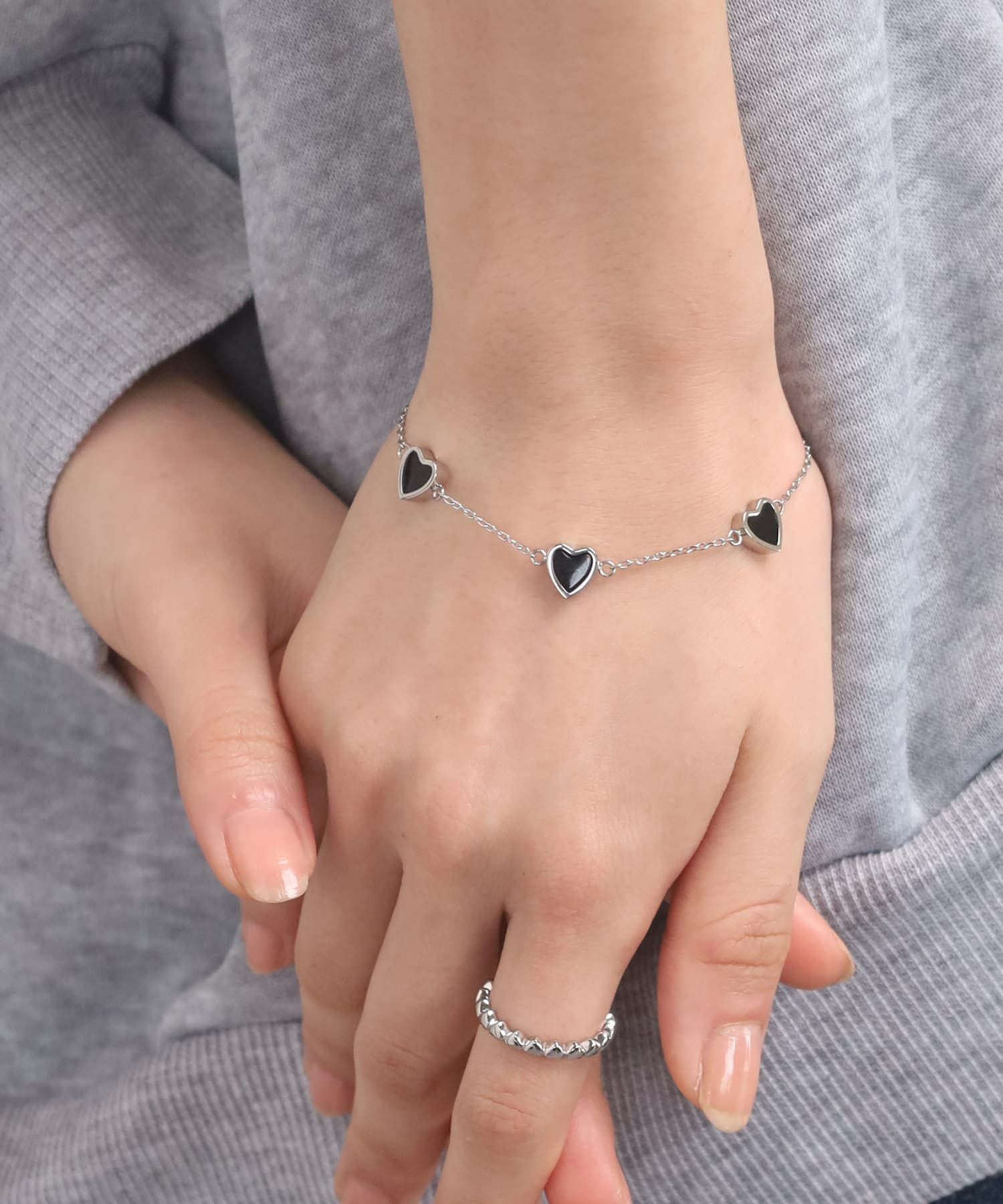 他の画像を見る LHME-エルエイチエムイー- “Moment”スリーハートブレスレット/ブラック/シルバー/サージカルステンレス316L(金属アレルギー対応) カートに入れる お気に入りに登録する 5.00 (1) ¥ 5,940 税込