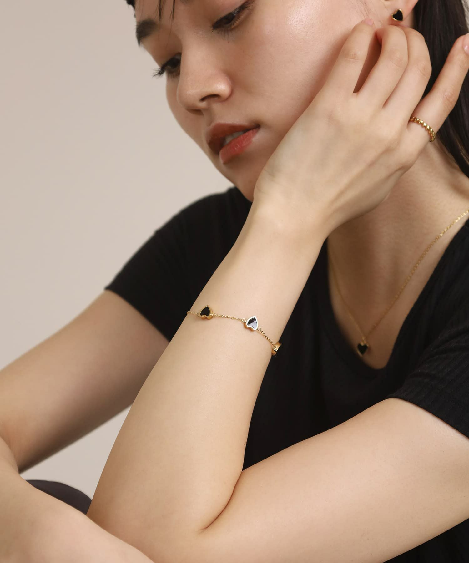 他の画像を見る LHME-エルエイチエムイー- “Moment”スリーハートブレスレット/ブラック/ゴールド/サージカルステンレス316L(金属アレルギー対応) カートに入れる お気に入りに登録する (0) ¥ 5,940 税込
